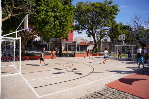 Lo propio ocurrió en la Plaza Favaloro de Villa Zagala, que ahora tiene nueva iluminación, cancha de fútbol y básquet, nuevo arbolado, senderos peatonales, equipamiento y luces LED.